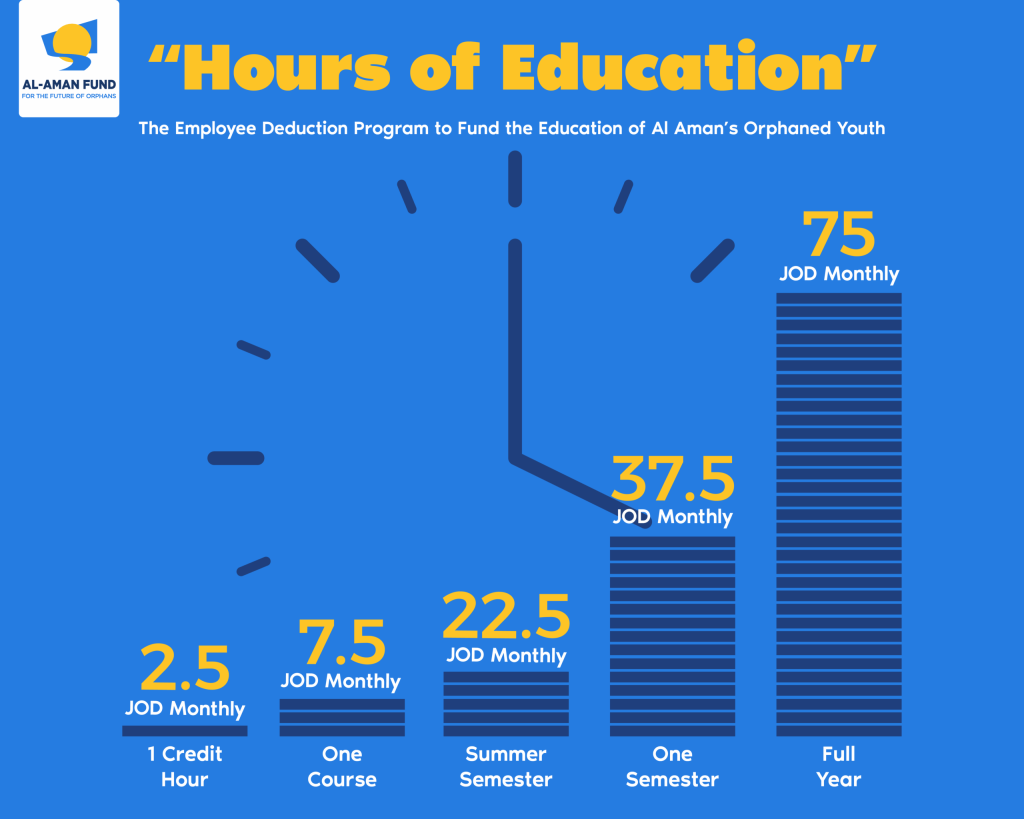 It is Al Aman Fund’s employee giving program, designed to make ongoing support simple and sustainable. Once enrolled, your selected donation amount is automatically deducted each month to help cover tuition costs for orphaned youth, ensuring their education continues without interruption.